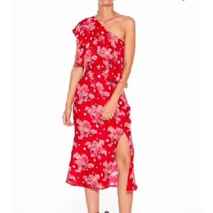 NWT one shoulder dress. La Maison Talulah Florence ruffle midi dress, lined size XL