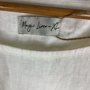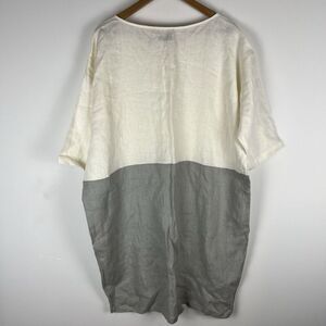 Magic Linen Color-Block Linen Dress Adria in White and Gray Lagenlook XL Pocket