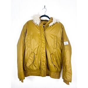 Offline By Aerie Leight Weight Sherpa Hooded Snap Button Jacket Gold Sz Large
