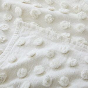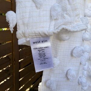 West Elm Full/Queen Candlewick End of Bed Blanket Stone White Boho Pom Poms