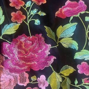 • Color: Black with pink & green floral embroidery