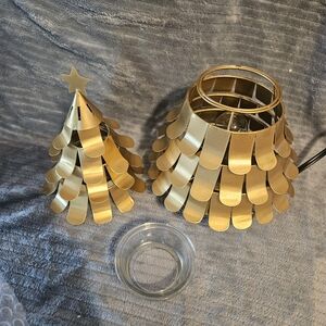 Elegant gold tree warmer. Perfect for holiday decor. Adds warmth and style.
