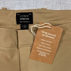 J. Crew 484 Slim Stretch Tech Pants Men 30x32 Khaki Water Resistant Commuter NWT