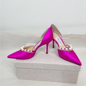 New in box JIMMY CHOO Aurelie 85 Satin Pearl Pumps heel