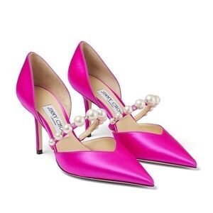 New JIMMY CHOO Aurelie 85 Satin Pearl Pumps heel