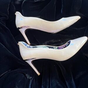 Chic nude heels by Ted Baker. Perfect for a classy touch. Such a sleek style that's sure to impress. This stiletto heel is crafted with a polished leather upper, and is detailed with metallic accents at the toe and heel for a luxurious finish.