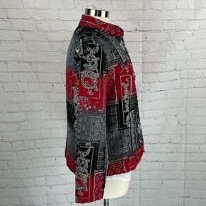 Christopher & Banks Zip Tapestry Blazer Red/Gray/Black Mandarin Collar Large