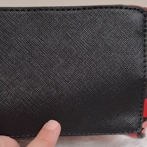 Elegant Disney Princess satchel and wallet with bold floral design. Features vibrant red flowers on a black background. Ideal for adding charm to any outfit.