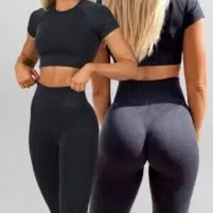 Seamless compression legging, similar to Alphalete Amplify. Ribbed high waistband, V back contour with subtle booty contour scrunch.