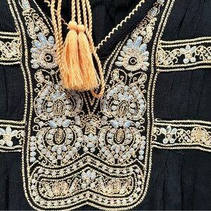 FREE PEOPLE WIND WILLOW BOHO EMBROIDERED TUNIC MINI DRESS BLACK CORAL Size XS