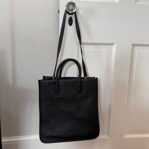 Black Leather J Crew Shoulder/Crossbody Bag with Detachable Strap