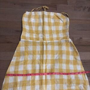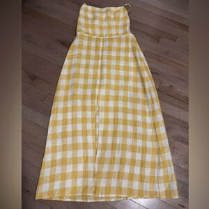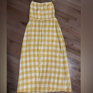 Reformation Nia Linen Midi Dress Open Back Yellow Dandelion Check Gingham