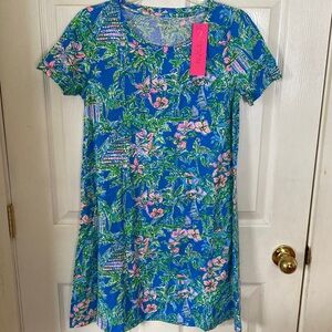 NWT Lilly Pulitzer Blue and Green Floral Tee Shirt Dress