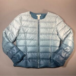 Chic ombre puffer jacket. Cozy and stylish. Ideal for cool weather.