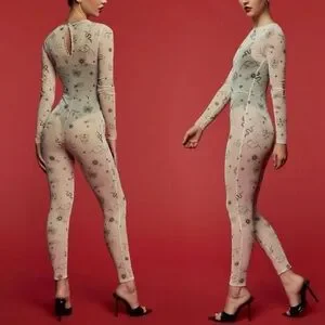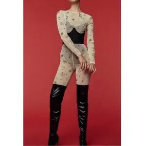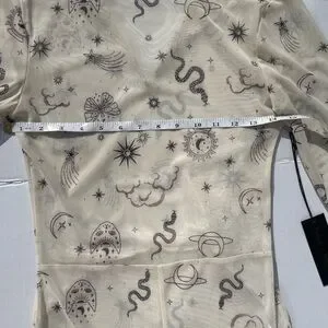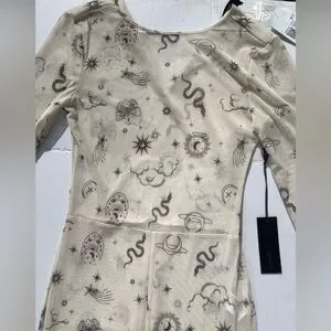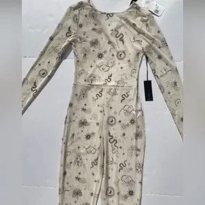 NWT celestial sheer catsuit from the Frederick’s of Hollywood x Forever 21 collaboration. Features an allover astrology print with stars, moons, and celestial motifs. Very stretchy with a sleek, body-hugging fit. Perfect for layering, festivals, costumes, or statement looks.