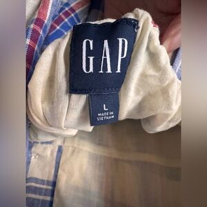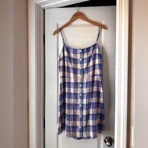 NWT Gap Linen-Blend Tie-Back Mini Dress Red Blue Plaid Size Large