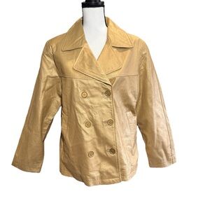 Light Metallic, gold, leather double breasted jacket.