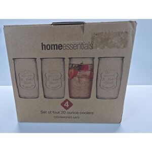 Home Essentials Glass Tumblers Set of 4 – 20 oz Iced Drink Coolers