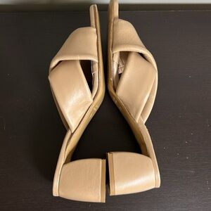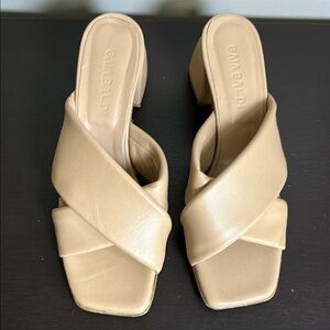 Gaia Baldi Sandal LEATHER Tan Shoe Italy Criss Cross Slip on Heel Sz 40 US 8.5