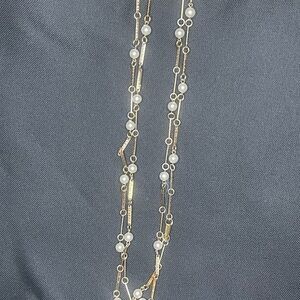 This exquisite necklace features a stunning combination of gold and pearl elements, perfect for adding a touch of elegance to any outfit.