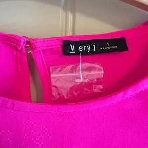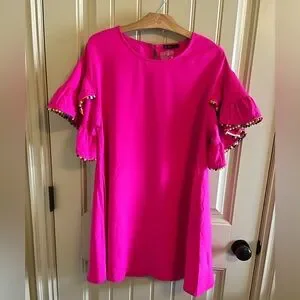NEW! VERY J Hot Pink Shift Dress with Pom Pom sleeves size Small