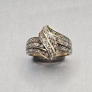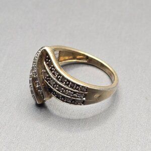 VTG Sterling Silver Vermeil Diamond Wave Band Ring Size 7 Cluster Signed