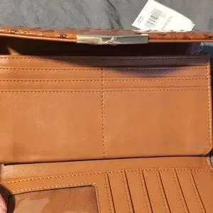 NWT Cato wallet in faux ostrich & faux leather. 7 3/4" x 4"