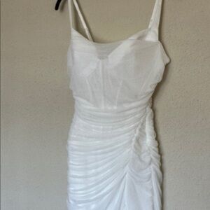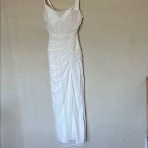 HOUSE OF CB Lini White Mesh Maxi Dress white ruched size S D-DD Plus cup NWOT