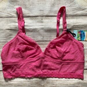 Pink polka dot mesh with lace trim.