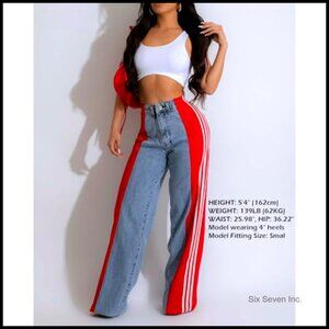 Brand new with tags and in flawless condition — these high waisted wide leg jeans deliver a trendy, relaxed look perfect for casual everyday wear, versatile outfits, or making a statement with their unique design. The fit is comfortable, flattering, and incredibly easy to wear.