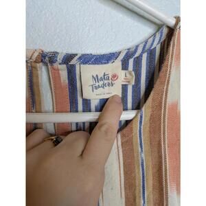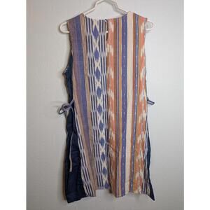 Mata Traders Women's Dress Large Ikat Stripe Sleeveless Side Ties Pockets Cotton