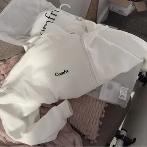 Set -2 !! M Comfrt White Zip-Up Hoodie and sweatpants M