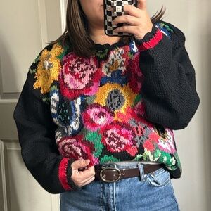 VINTAGE NWT Ramie Cotton Knitted Floral Pullover Sweater. Large