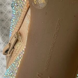 These dazzling silver heeled boots from INC International Concepts feature a sleek silhouette and a high stiletto heel, perfect for making a bold fashion statement. The boots are crafted with a glittery finish that catches and reflects light, adding a touch of glamour to any special occasion. With a pointed toe design, they offer a chic and sophisticated look.