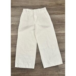 VINCE Wide Leg Cropped Linen Blend Pants White Women Size 6 Minimalist
