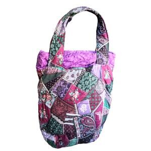 LARGE Vintage 80s 90s Patchwork Handmade Cotton Tote Bag Floral Paisley Quilted