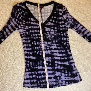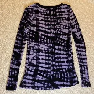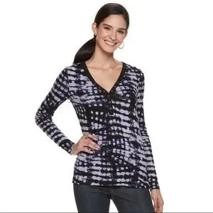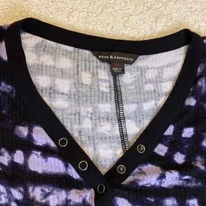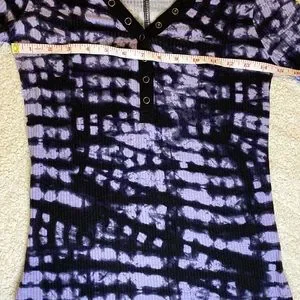 Elevate your basics collection with this Long sleeve blouse Soft jersey construction ribbed henley Stretchy black purple tie dye Rock Republic XS