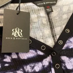 Rock & republic womens shirt tie-dye black purple snap button ribbed XS