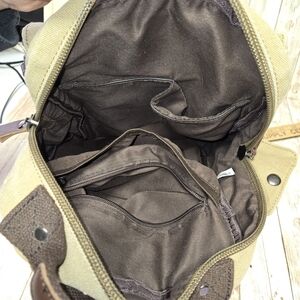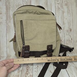 Unisex medium-sized canvas backpack with a rugged military-inspired aesthetic. Made from sturdy, durable canvas with brown straps that give it a classic utility look. This backpack is very clean and well cared for, perfect for everyday casual use, travel, school, or outdoor activities.