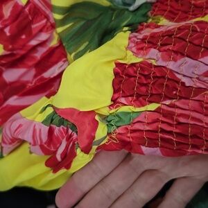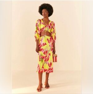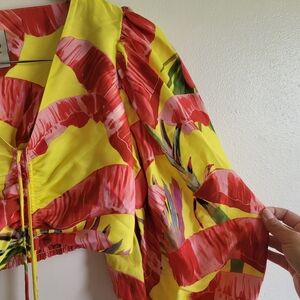 Farm Rio, Sweet Jungle Lime Crop Top, Lime Yellow/Red/Pink, Size XS.