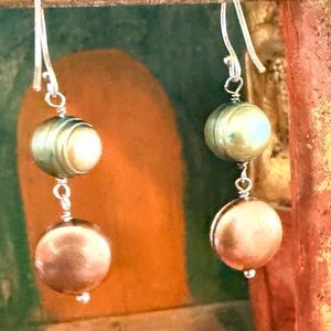 #FreshwaterPearls #SterlingSilverEarrings #PearlDropEarrings #ArtisanJewelry #NaturalPearls #BohoJewelry