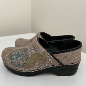 Dansko embroidered clogs, tan, size 5.5 - 6 US 36 EU