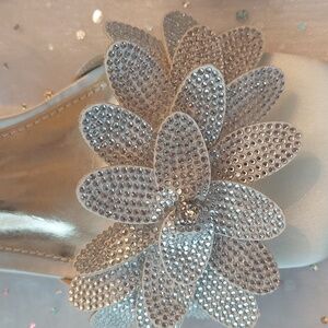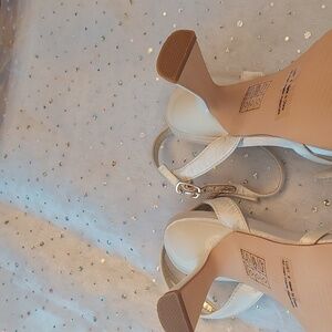 Ivory and silver beaded formal pumps size 6. Comes with extra heel protectors and 2 extra large rhinestones. Bottom of inside has thick cushioning. Very gently worn once. No scuffs or rips or missing beads. Purchased from DSW. 3 inch heel