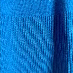 A vibrant blue knit sweater (see true color in 2nd photo) from 360Cashmere, featuring a classic crew neck and ribbed detailing. This piece is perfect for adding a pop of color to your wardrobe.