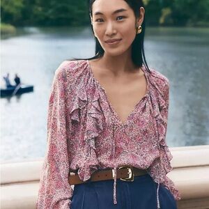 Ann Taylor Pink Floral Ruffle Blouse