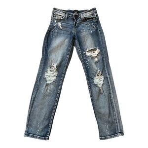 JUDY BLUE BOYFRIEND FIT DISTRESSED RIPPED STRAIGHT LEG BLUE DENIM SIZE 28