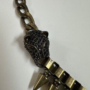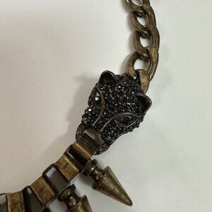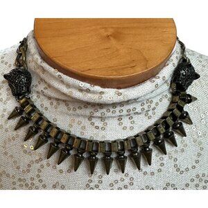 Natasha Spiked Leopard Head Choker Necklace Chunky Brass Tone Goth Punk Y2K