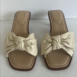 SAM EDELMAN Women's Darcie Ivory LEATHER Bow Kitten Heels Sandals Size 8.5 NWT
