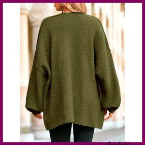 Oversized Chunky Knit Cardigan Long Lantern Sleeve Open Front Sweater Coat