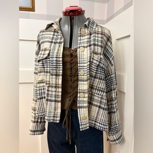 Chic plaid overshirt by Zara. Features a blend of neutral tones. Perfect for layering.